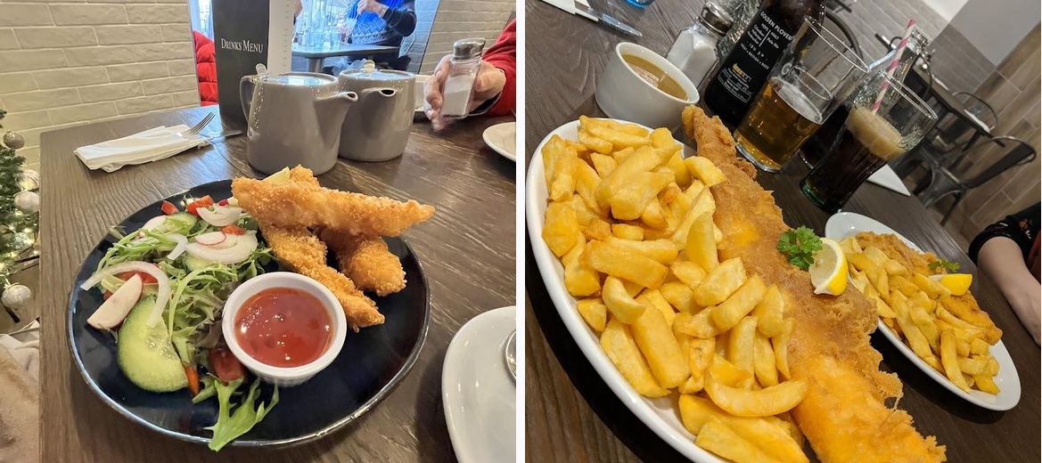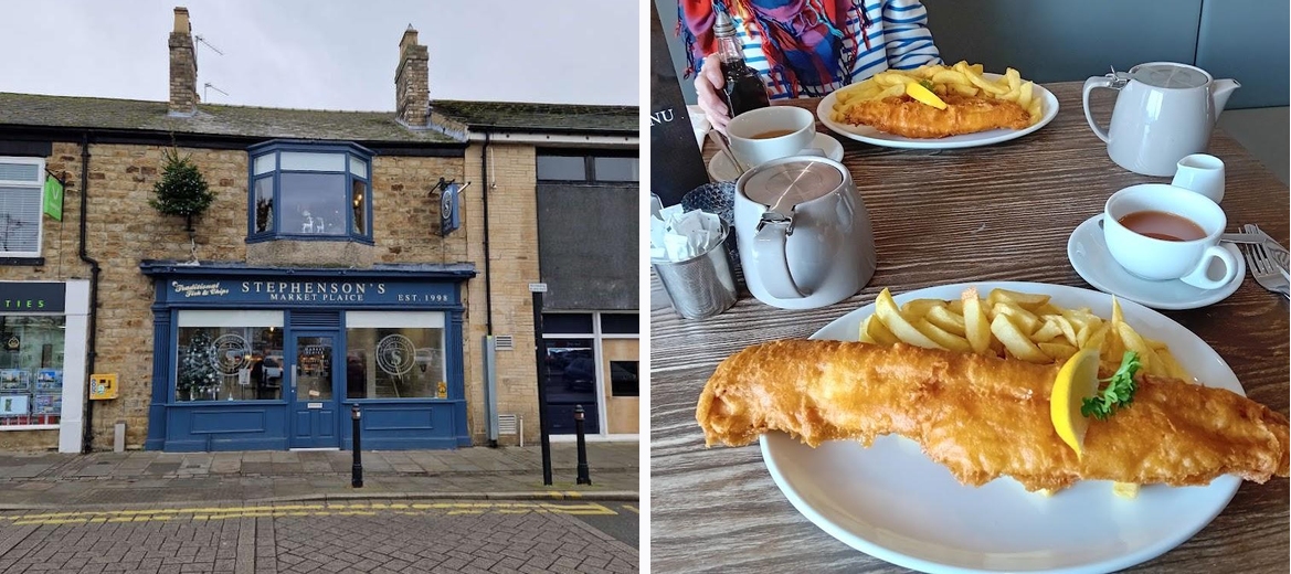 I visited Crook on Friday 23rd December on business and wanted somewhere to have lunch. Walking past Stephenson's on the market square I initially thought it was just a fish and chip shop, however, on entering I found that it also had a restaurant up a short flight of stairs. The upper space was modern and super clean. The staff were very friendly and efficient. The menu was very good a little something for everyone. I ordered fish and chips and I have to say, hand on heart, they were the best fish and chips I have eaten. I would defo recommend this restaurant.